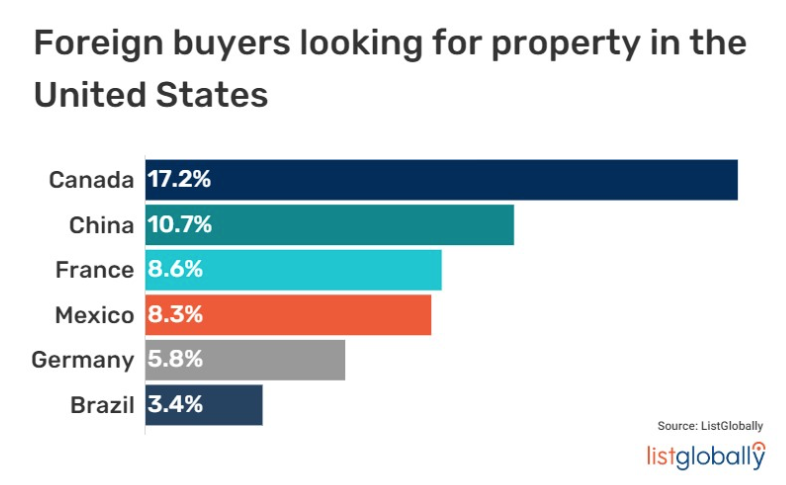 ListGlobally ha analizzato i luoghi in cui gli acquirenti stranieri cercano gli immobili. Non sorprende che gli acquirenti canadesi rappresentino il 17% delle ricerche estere e quelli brasiliani il 3%. La regione più ricercata dagli acquirenti stranieri è la Florida, il “Sunshine State”.